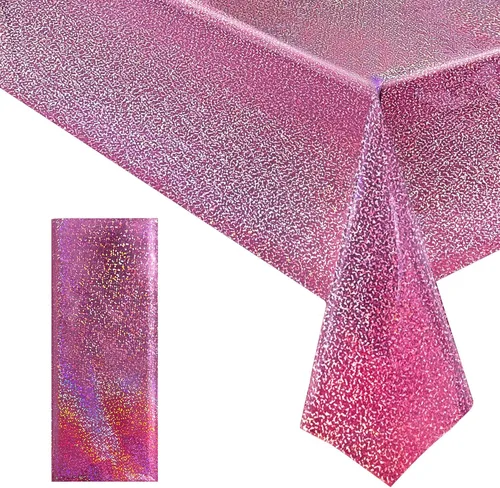 Manteles Holográficos Láser Rosa, Cubiertas de Mesa Brillantes Rosa Intenso 40" x 108" Manteles Rectangulares Desechables de Papel Aluminio para