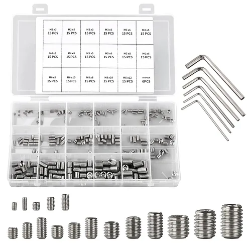 Juego de 261 tornillos hexagonales de cabeza Allen, juego de tornillos M2 M3 M4 M5 M6 M8 304 de acero inoxidable interno hexagonal sin cabeza juego