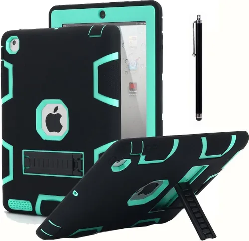 AICase - funda para iPad 2 iPad 3 iPad 4, con soporte anti golpepes de caucho híbrido resistente al impacto de tres capas, con Stylus.