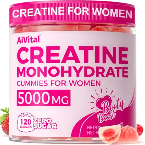 Gomas de creatina 3 en 1: cada porción ofrece 0.18 onzas de monohidrato de creatina para apoyar el músculo magro y la fuerza de los glúteos, 0.07 onzas de colágeno para la salud de las articulaciones y la piel, y 0.04 onzas de BCAA (2:1:1) para ayudar en la recuperación y reducir el dolor muscular post-entrenamiento, todo en una efectiva gomita diaria. Gomitas rellenas de bayas: evita los polvos desordenados y las cápsulas difíciles de tragar, disfruta de una explosión de sabor real a bayas con nuestras gomitas de creatina rellenas de bayas. Prácticas, sabrosas y fáciles de tomar en cualquier momento: antes del entrenamiento, después del entrenamiento o sobre la marcha. (Nota: Los envases nuevos y antiguos se envían al azar. La calidad sigue siendo la misma.) Sin azúcar, amigable con la dieta cetogénica y sin OMG: fabricadas con tus objetivos de salud en mente, estas gomitas son 100% libres de azúcar, sin OMG y keto-amigables, ofreciendo una nutrición limpia sin comprometer tu estilo de vida. Apoyo enfocado en el glúteo: Formulado para apoyar el desarrollo de los glúteos y la tonificación de la parte inferior del cuerpo, te ayuda a construir un trasero más firme y esculpido, mientras proporciona fuerza y resistencia para tus días de piernas y más. Creatina formulada para mujeres: Formulada para las necesidades de fitness, recuperación y tonificación de las mujeres. Las gomitas de creatina monohidrato AiVital de 5g vienen en un frasco de 120 unidades — con una recomendación de 4 gomitas por día, obtienes un suministro completo de 30 días de apoyo limpio y efectivo para tu energía y músculos diariamente.