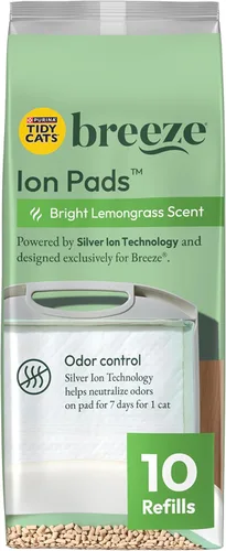 Asegúrate de que tu sistema de caja de arena para gatos Purina Tidy Cats Breeze (se vende por separado) esté listo para todos tus amigos felinos con este paquete de repuesto de almohadillas para gatos Purina Tidy Cats Breeze. Estas almohadillas de arena para gatos absorben rápidamente la orina que pasa a través de los gránulos de arena Breeze, bloqueando la humedad para mantener la caja de arena para gatos seca y a tus gatos cómodos. Cada almohadilla de arena para gatos también está garantizada para evitar el olor a amoníaco durante siete días para un gato, y la tecnología de control de olores ayuda a mantener un hogar con olor fresco. Aún mejor, las almohadillas súper absorbentes son convenientemente desechables para facilitar la limpieza de la arena para gatitos. Absorción. Lanza. Reemplazar. Debido a que el diseño innovador hace que instalar y quitar las almohadillas para orina de arena para gatos sea muy fácil, puedes pasar menos tiempo limpiando después de tu familia de gatos y más tiempo abrazando a tus gatos. Mantén un suministro de estas almohadillas desechables Breeze listas para usar con tu sistema de caja de arena para gatos Tidy Cats Breeze, para que puedas decir "adiós" a recoger grumos de orina.