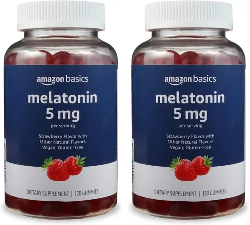 Amazon Basics Melatonina 5 mg, 120 gomitas (2 por porción), fresa (anteriormente Solimo) (paquete de 2)