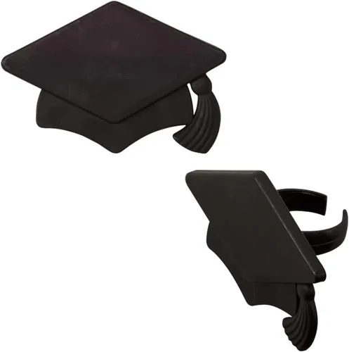 Anillos de decoración de cupcakes para fiesta de graduación, mortero, tapa negra, 24 piezas