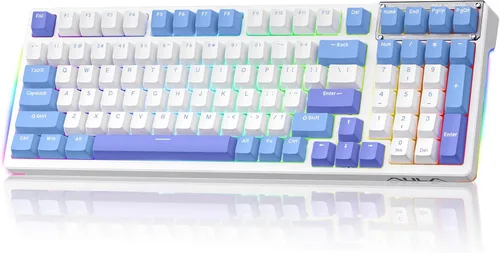 AULA Teclado de 99 teclas, triple modo BT5.02.4GHzUSB-C, teclado mecánico personalizado intercambiable en caliente, teclado inalámbrico RGB