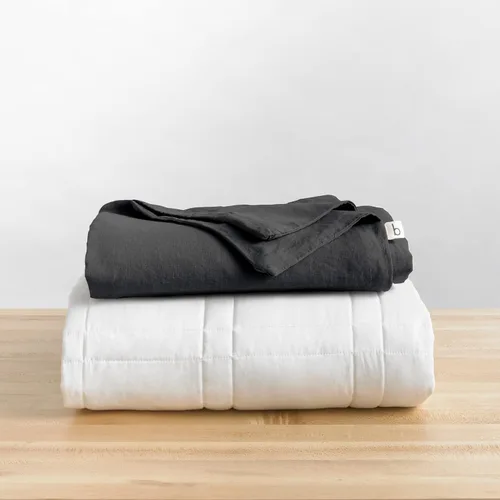 Baloo Manta suave con peso de 12 libras con funda de lino extraíble, manta acolchada de algodón pesado, color carbón, 42 x 72 pulgadas