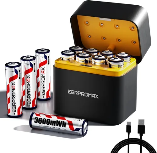 Alta capacidad de 3600 mWh: mayor tiempo de funcionamiento para dispositivos que consumen mucha energía: cada batería de litio AA ofrece una impresionante energía de 3600 mWh, ofreciendo significativamente más tiempo de funcionamiento que las baterías tradicionales NiMH o alcalinas. Ideal para dispositivos de alto drenaje como controladores de juegos, teclados inalámbricos, juguetes eléctricos, cámaras de rastro y equipos domésticos inteligentes. Paquete de 12 baterías de litio AA recargables con cargador: este paquete incluye 8 baterías de litio AA recargables de alto rendimiento de 1.5 V y un cargador de batería USB de carga rápida. Diseñadas para un uso diario pesado, estas baterías ofrecen una solución sostenible y ecológica que funciona perfectamente para dispositivos electrónicos domésticos, dispositivos de oficina y dispositivos al aire libre. Carga rápida de 2.5 horas, siempre lista cuando las necesites: con el cargador USB inteligente incluido, las 8 baterías se pueden recargar completamente en solo 2.5 horas. Cada ranura se carga de forma independiente, lo que le permite cargar cualquier cantidad de baterías a la vez. Un verdadero ahorro de tiempo para familias ocupadas, profesionales y usuarios de tecnología. Salida constante de 1.5 V - Potencia estable de principio a fin: a diferencia de las baterías AA NiMH que pierden voltaje a medida que se descargan, estas avanzadas baterías recargables AA de litio mantienen una salida constante de 1.5 V durante todo el ciclo. Sus dispositivos funcionan a plena potencia hasta que la batería se agota realmente, sin apagones repentinos o rendimiento débil. Más de 2500 ciclos de recarga: construidas para durar años: diseñadas para soportar más de 1600 ciclos de carga y descarga completos, estas baterías de litio recargables AA duran más que miles de baterías desechables. Ideal para hogares que quieren ahorrar dinero y reducir el desperdicio de batería sin sacrificar el rendimiento. 【Protección de seguridad avanzada: tranquilidad integrada】Equipado con tecnología de gestión inteligente de batería, cada celda incluye protección contra sobrecarga, sobredescarga, sobrecalentamiento y cortocircuitos. Disfruta de una carga y descarga segura ya sea en casa, en el trabajo o en movimiento. Compatibilidad universal: funciona con todos los dispositivos AA: las baterías AA de litio EGRPROMAX son compatibles con todos los dispositivos electrónicos estándar alimentados por pilas AA. Utilízalos en linternas, mouse y teclado inalámbricos y controladores PlayStation, controles remotos, cepillos de dientes eléctricos y más. Cargador inteligente compacto - Carga en cualquier lugar a través de USB: el cargador USB incluido es ligero, fácil de viajar y está diseñado con 8 bahías de carga independientes. Compatible con adaptadores de pared USB, cargadores de energía y portátiles, es ideal para viajeros, campistas y entusiastas del aire libre que necesitan una carga confiable. Ecológico y rentable: di adiós a las alcalinas desperdiciadas: cambiar a baterías de litio AA recargables te ayuda a reducir los residuos de un solo uso y ahorrar dinero con el tiempo. Cada batería reemplaza hasta 2500 unidades desechables, lo que la convierte en una inversión inteligente para el ahorro de energía a largo plazo y la protección del medio ambiente. Perfecto para amantes de la tecnología, familias y profesionales: ya sea que estés comprando para uso personal o como un regalo práctico, este juego de batería AA recargable y cargador es ideal para entusiastas de la tecnología, bricolaje, fotógrafos y cualquier persona que confíe en herramientas y dispositivos alimentados por baterías. Imprescindible en cada hogar.