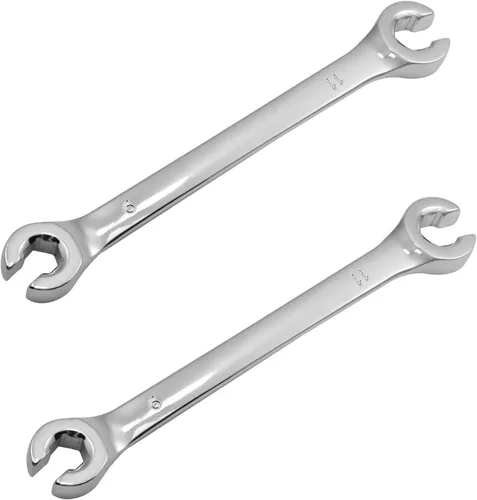 Bettomshin Llave de tuerca acampanada, métrica doble extremo abierto Característica * Doble extremo abierto: 0.354 in x 0.433 in / 0,35 x 0,43 pulgadas. * Hecho de acero de alto carbono para mayor resistencia y durabilidad. * Totalmente pulido para una protección duradera y resistente a la corrosión. * Una llave normal solo puede agarrarse a 2 lados de una tuerca, y esta llave está diseñada para agarrar los seis lados de una tuerca. * El extremo abierto de desplazamiento de 15 grados permite un mayor rango de oscilación de arco en espacios reducidos. * Se aplica en la fabricación manual de bricolaje, reparaciones de automóviles, mantenimiento del hogar y reparaciones más generales. Parámetros técnicos Material: acero de alto carbono Acabado: pulido, cromado Tamaño de doble extremo: 0.354 in x 0.433 in / 0.35 x 0.43 pulgadas. Contenido del paquete 2 llaves de tuerca acampanada
