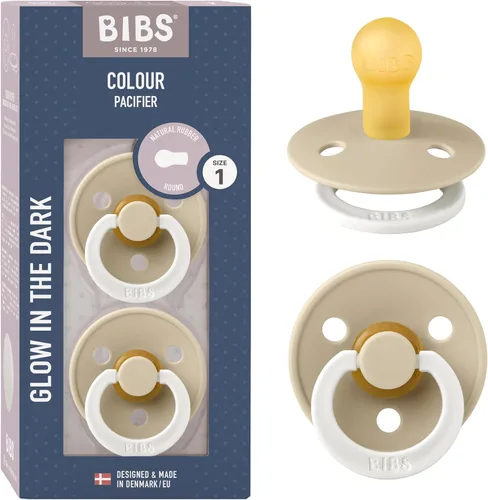 BIBS - Paquete de 2 chupetes Bibs Colour, calmante, libre de bisfenol A, punta redonda, látex de goma natural