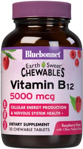 ¿Para qué sirve Bluebonnet Nutrition Earth Sweet Vitamina B12 - Tabletas masticables de 5000 mcg, sin soja, sin gluten, certificado Kosher, sin lácteos, vegano?
