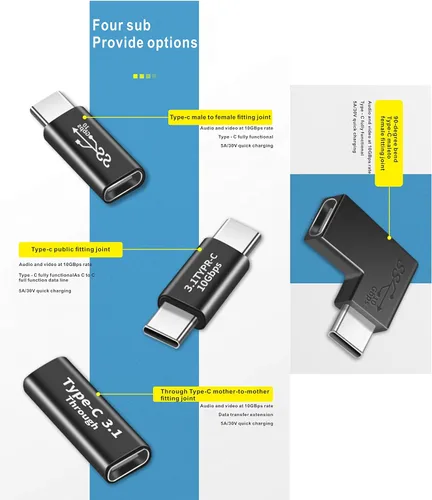 【Ten en cuenta antes de comprar】: estos cuatro adaptadores son adaptadores de tipo C a tipo C, lo que significa que ambos extremos son enchufes tipo C Ampliamente utilizado: la interfaz USB C admite carga rápida de la mayoría de teléfonos móviles, tabletas y portátiles, y transmisión de audio, video y datos entre dispositivos a una velocidad de hasta 10 GBps. Carga y transmisión de datos: actualiza la carga rápida y la expansión de transmisión de datos. La velocidad de carga y transmisión de datos depende del dispositivo, y la velocidad máxima de soporte es de 10 GBps. 【Fácil de usar】: Plug and Play sin instalación. Ultra pequeño, fácil de transportar Obtendrás: proporcionamos 1USB-C macho a USB-C hembra adaptador de codo de 90 grados, 1adaptador macho USB-C, adaptador macho 1USB-C, 1USB-C hembra a adaptador USB-C hembra y 1USB-C hembra a adaptador USB-C hembra. Siempre nos hemos comprometido a brindar un servicio al cliente de alta calidad. Si necesitas ayuda, no dudes en ponerte en contacto con nosotros y te atenderemos.