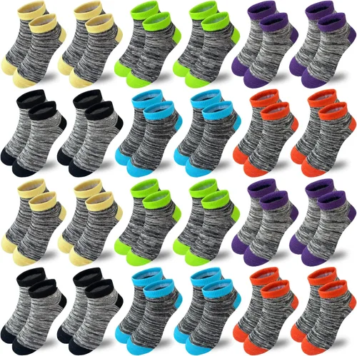 • elige De acuerdo con el tamaño de zapato de tu niño, los niños de estas edades pueden disfrutar de estos divertidos calcetines de tobillo en todas las estaciones Paquete de calcetines de tobillo para niños: recibirás 24 pares de calcetines para niños en 6 colores, 4 pares por color, los calcetines deportivos brillantes para niños son perfectos para niños activos y fáciles de combinar con todo tipo de ropa y zapatos atractivos Ajuste elástico: diseño de puño elástico que envuelve el tobillo alto sin sensación de restricción a la piel, es fácil de poner y no aprieta las piernas y no se desliza fácilmente, pertenecen a los calcetines de uso diario de los niños reales El mejor regalo para niños y niñas: estos calcetines básicos para niños son el regalo perfecto en Navidad, cumpleaños, día del niño para los niños pequeños. Puedes elegir estos calcetines para niños pequeños para tus hijos o los de tus amigos como regalo
