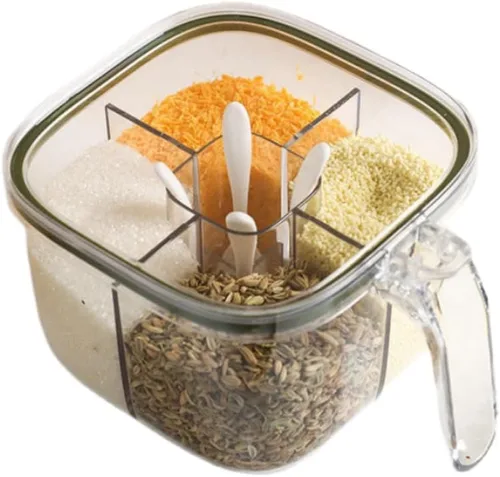 Pregunta sugerida sobre Caja transparente de marca, juego de recipientes sellados de 4 compartimentos con tapa, cubierta y cucharas de servir, tarros de plástico ¿Este producto sí me sirve para lo que necesito?