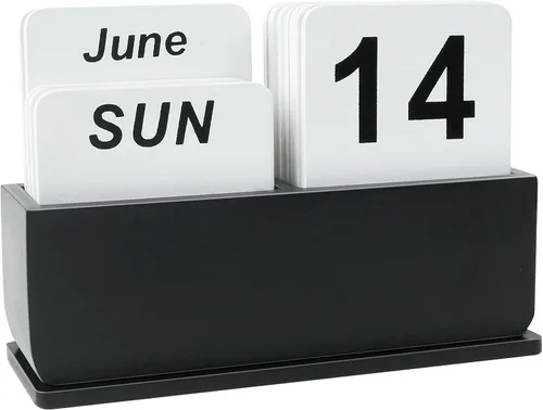 Diseño simple y elegante: La organización intuitiva de las tablas muestra rápidamente el mes, el día de la semana y la fecha en el frente. Incluye 8 tableros de números, 3 tableros de meses, 2 tableros de semanas en un recipiente de almacenamiento abierto, sin año impreso, puede ser reutilizable anualmente. Calendario de escritorio de madera: fabricado con tableros de fecha de madera duraderos y tableros de mes y semana, resistente con un aspecto estético moderno de granja. La sutil combinación de colores y el diseño se pueden combinar fácilmente con cualquier decoración, agradable al tacto, durará mucho tiempo. Fácil de leer y cambiar la fecha: La simplicidad de la fuente grande muestra claramente la fecha, puede leer fácilmente la fecha desde el otro lado de la habitación de un vistazo. Las tablas individuales del mes, la fecha y el día de la semana son fácilmente intercambiables, simplemente dale la vuelta para mantenerse al día con las fechas actuales. Tamaño perfecto: Tamaño de 5.9 pulgadas de largo x 1.92 pulgadas de ancho x 4 pulgadas de alto. Compacto y ordenado en tamaño, sin ocupar demasiado espacio. Es un complemento atractivo y funcional para tu escritorio, mesa, estante, alféizar de ventana, encimera de cocina, armario, sala de estar, etc. ¡Añade estilo y vida, aportando un aspecto fresco a tu espacio! Regalo Considerado: Aspecto elegante y funciones útiles que lo convierten en un regalo maravilloso y considerado para tu familia y amigos, profesor, etc. Es una gran opción, y muy práctica para el uso diario, es un poco divertido para ayudar a mantener un registro de la fecha, también añade un bonito toque decorativo.