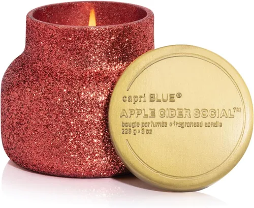 Capri Blue Vela Perfumada Social de Sidra de Manzana - ¡Dale glamour a esta temporada navideña con nuestro Apple Cider Social Glam Petite Jar! Con un impresionante acabado de brillo morado, esta vela llenará tu espacio con notas de manzana crujiente, canela, pera jugosa con clavo rallado y nuez moscada fresca. Este elegante frasco pondrá a cualquier persona en un estado de ánimo festivo. Esta vela de otoño emana un rico aroma a manzana, perfecta para tu decoración de otoño. Velas perfumadas Apple Cider Social - El dulce regalo de manzana de Capri Blue crea el ambiente otoñal con un toque de especias. Estas velas navideñas tienen notas de manzana crujiente, canela, pera jugosa con clavo rallado y nuez moscada fresca. Acogedor, cálido y simplemente delicioso! Nuestro aroma de velas de manzana y tarro decorativo hacen que sea una pieza destacada para la decoración de Navidad o como un maravilloso regalo para mujeres. Velas de lujo - Nuestra mezcla de cera de soja ha sido afinada para brindar la mejor experiencia de fragancia. Nuestros ingredientes de alta calidad ayudan a proporcionar velas de larga duración, así como proporcionar una experiencia más fragante. Fabricadas con cera de vela premium, nuestras velas de otoño ofrecen una combustión duradera. Cuidado de la vela - Siempre permite que la parte superior de la cera de la vela se licúe completamente antes de apagarla para ayudar a evitar la formación de túneles. Mantén la mecha recortada a 1/4" y recorta la mecha antes de la primera combustión. Advertencia: No dejes caer escombros en la cera. Mientras se queman, nunca coloque sus velas decorativas sobre superficies irregulares o sensibles ni las deje sin supervisión Deja de usarla cuando quede media pulgada de cera para evitar daños en las superficies. ¡Reutiliza estos tarros de velas de cristal de maneras nuevas y emocionantes! Acerca de nosotros - Inspirado en las tendencias de moda contemporáneas, Capri Blue crea nuevos productos emocionantes para cada temporada. Nuestras velas de cera de soja Capri Blue Glam están disponibles en varios frascos de velas de hermosos colores y varias fragancias únicas. Desde pequeñas velas hasta velas grandes - ¡Cómpralas todas! No puedes equivocarte.