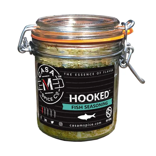 Casa M Spice Co Condimento de pescado enganchado • Muy bajo en sodio • Sin MSG • Sin gluten • Apto para dieta cetogénica • Especias de mariscos