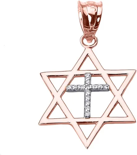 Colgante de oro rosa de 10 quilates con forma de estrella de diamante y cruz de David