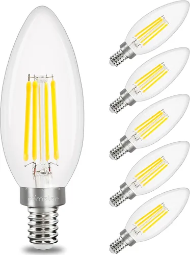 Bombilla LED de candelabro regulable: El nivel de brillo de estas bombillas de candelabro se puede ajustar del 10% al 100%. Es más fácil para usted tener un fondo ambiental diferente atenuando el interruptor en cualquier momento según sus necesidades. Es compatible con la mayoría de los reguladores LED modernos en EE. UU. Protección de los ojos: Las bombillas LED E12 de Comzler han pasado las estrictas pruebas estándar, incluyendo parpadeo, estroboscópico, deslumbramiento y reproducción de color, que protegerán tus ojos. La alta reproducción de color 80+ de la bombilla candelabro Comzler hace que los artículos coloridos en tu hogar se muestren con mayor precisión. Base pequeña E12 y blanco luz diurna brillante: Es muy fácil de instalar con una base estándar E12 (12 mm de diámetro). Por lo tanto, puede aplicarse a todas las luminarias con base E12. La temperatura de color de 2700 K hace que tu entorno sea más claro. El estilo vintage en forma de vela con vidrios transparentes se adapta idealmente a candelabros, lámparas colgantes, ventiladores de techo, apliques de pared. Equivalente a 40W: el uso de nuestras bombillas C35 puede ofrecer el mismo brillo o incluso más brillante en comparación con las bombillas incandescentes tradicionales de 40W. Su gran disipación de calor y largas horas de vida útil reducen tus gastos y te ahorran la molestia de las bombillas frecuentes. Profesional: Nos comprometemos a proporcionar un excelente servicio a nuestros clientes. Todas las bombillas Comzler se fabrican bajo las más estrictas directrices de garantía de calidad.