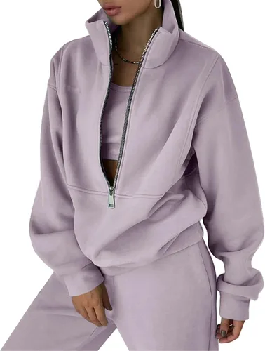 Conjunto de sudadera de forro polar para mujer, 2 piezas, sudadera con media cremallera, conjunto de pantalones deportivos casuales de 2 piezas