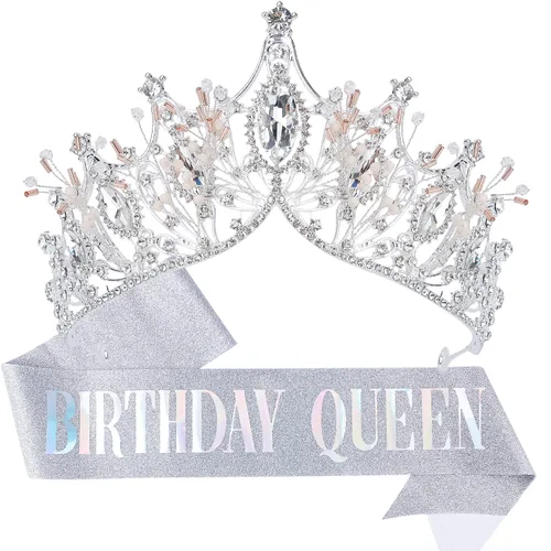 Coronas de cumpleaños para mujer, banda de cumpleaños y tiaras para mujer, corona y tiara de reina de feliz cumpleaños, coronas para mujer