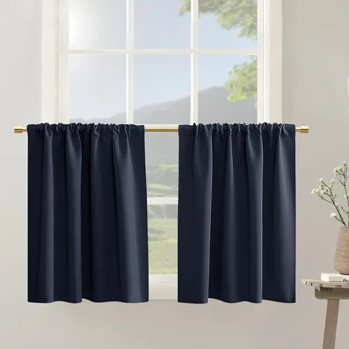 TELA OPACA: Estas cortinas están hechas de material de poliéster microfibra. El hilo negro tejido dentro de dos capas de color liso suave hace que las cortinas tengan un rendimiento de opacidad del 75-100%. El blanco tiene una opacidad de aproximadamente 75%. Eficiencia energética: las cubiertas de ventana con aislamiento térmico no solo bloquean la luz solar y mantienen el calor fuera para proteger los muebles del hogar, sino también las plantas verdes de interior de los rayos UV agresivos para ahorrar facturas de electricidad. Además, el paño de sombreado físico es respetuoso con el medio ambiente y bueno para la salud AMPLIAMENTE UTILIZADAS: Se utilizan para la parte inferior de tus ventanas o ventanas de longitud más corta, ayudan a oscurecer la luz y crear el aspecto elegante de tu ventana. Se pueden utilizar como cortinas de ventana de baño, cortinas de cocina o cortinas de cafetería, adecuadas para otras habitaciones como gabinete, RV o autocaravana, sótano, dormitorio, sala de estar y otras ventanas pequeñas y estrechas para proteger la privacidad. JUEGO LISTO: Juego de 2 PIEZAS en bolsas de plástico. Cada panel mide 106,7 cm de ancho por 91,4 cm de largo. Ranura superior con bolsillo para barra de 3 pulgadas con cabezal de 0.8 pulgadas, ajuste universal para la mayoría de las barras. CUIDADO FÁCIL: Lavar a máquina en ciclo suave. Secar en secadora a baja temperatura. No usar blanqueador.