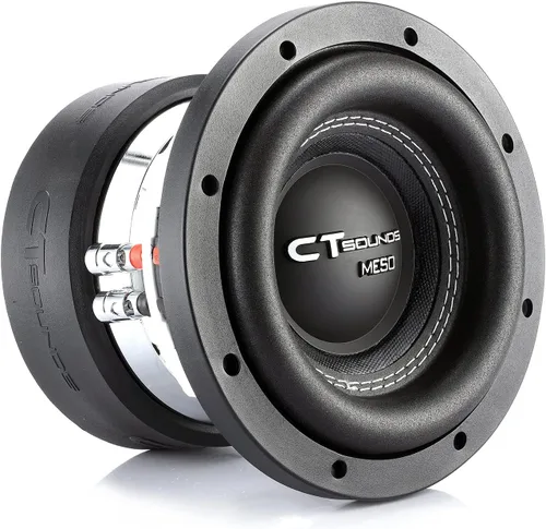 Subwoofer de 6,5 pulgadas con potencia RMS: 400 vatios RMS; Potencia máxima: 800 vatios MAX; Configuración de bobina: subwoofer dual de 2 ohmios Bobina de voz de aluminio revestida de cobre de 2 pulgadas y 4 capas e imán de ferrita de grado Y35 apilado doble de 90 onzas Cono reforzado con fibra de carbono al 5% y cono de espuma mega de grado competitivo Sistema avanzado de enfriamiento por aire y placa inferior de hierro bajo en carbono con acabado cromado característico Conductores de oropel de cobre tejidos redondos dobles y terminales de presión de calibre 12