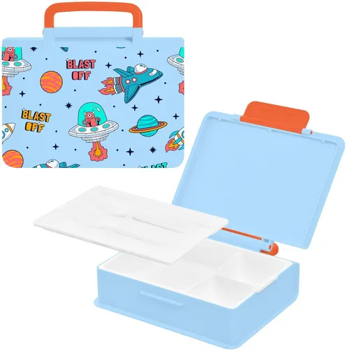 ZAUYA Rocket Bento - Lonchera Bento para niños recipientes de almuerzo a prueba de fugas con 3 compartimentos y tenedor cuchara para niñas y niños