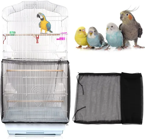 Daoeny Funda universal para jaula de pájaros, red ajustable de nailon suave y aireado, atrapa semillas de plumas, falda transparente para jaulas