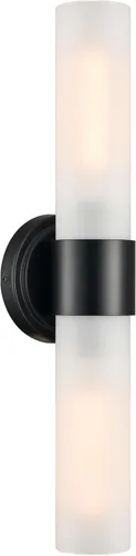DAYCENT Modernas luces negras para tocador de baño, aplique de pared de vidrio esmerilado de 2 luces, apliques cilíndricos negros mate, iluminación
