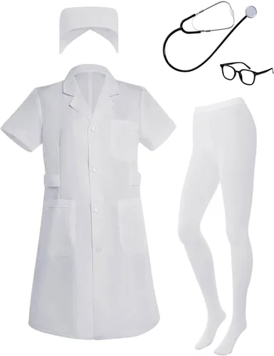 Disfraz de enfermera para mujer, abrigo de laboratorio blanco, disfraz de médico, disfraz de Halloween, incluye abrigo, sombrero, estetoscopio