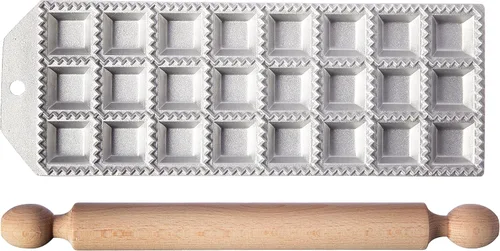 Eppicotispai Fabricante de ravioles cuadrados de aluminio de 24 agujeros con rodillo