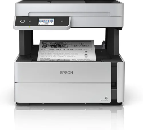 La impresora todo en uno EcoTank ET-M3170 monocromo supertanque, impulsada por PrecisionCore, ofrece una impresión sin preocupaciones sin cartuchos con tanques de tinta de gran tamaño y fáciles de llenar. Los usuarios ahorran hasta un 75 por ciento con botellas de reemplazo de bajo costo frente al tóner láser mono, aproximadamente 1/3 de 1 centavo por página ISO frente a 2 ½ centavos (1). La botella de tinta de repuesto del ET-M3170 incluye suficiente tinta para imprimir hasta 6.000 páginas (2). Cuenta con velocidades de impresión rápidas y una salida rápida de primera página. También ofrece una bandeja de papel de 250 hojas, ADF de 35 páginas, impresión automática a 2 caras, además de copia y escaneo y redes cableadas e inalámbricas. Además, ahorra energía con un menor consumo de energía frente al láser. Además, está respaldado por una garantía limitada de 2 años con registro (3). *El grupo NPD, Servicio de seguimiento total de canales, Estados Unidos y Canadá, Impresoras SF/MF de inyección de tinta, depósito de tinta recargable incluido, basado en unidades, febrero de 2019 - enero de 2020. Las impresoras Supertank se definen como impresoras de depósito de tinta recargables. 1. Comparación de ahorros y costos por página ISO basados en el costo de compra de una botella de tinta de reemplazo y el costo de suficientes cartuchos de tóner mono para lograr el rendimiento total de páginas de la botella de tinta utilizando los precios y rendimientos en línea de los fabricantes para los cartuchos de tóner de mayor capacidad para las impresoras láser monofónico más vendidas con un precio de $499 (USD) con velocidades de 30 ppm o menos por industria disponibles datos a partir de julio 2018. Los ahorros reales variarán en función de las tareas de impresión, los volúmenes de impresión y las condiciones de uso. 2. Parte de la tinta de la botella incluida se utiliza para la configuración inicial, los rendimientos son inferiores a los de las botellas de tinta de reemplazo. Rendimiento de la botella de tinta de reemplazo basado en el patrón ISO/IEC 19752 con la metodología de Epson. Los rendimientos reales de tinta variarán considerablemente por razones como imágenes impresas, ajustes de impresión, temperatura y humedad. La tinta se utiliza para la impresión y el mantenimiento de la impresora, y la tinta debe estar disponible para la impresión. Para obtener más información, visite www.epson.com/inkinfo 3. 12 meses de garantía limitada estándar o 50.000 hojas de papel normal (lo que ocurra primero). Durante 12 meses adicionales (un total de 24 meses o 50.000 hojas de papel normal, lo que ocurra primero), registra tu producto y utiliza botellas de tinta originales Epson. Consulte la Garantía Limitada para más 4. La mayoría de las funciones requieren una conexión a Internet a la impresora, así como un dispositivo habilitado para Internet y/o correo electrónico. Para obtener una lista de impresoras y dispositivos compatibles compatibles con Epson Connect™, visite www.epson.com/connect 5. CERTIFICADO Wi-Fi; nivel de rendimiento sujeto al rango del router que se está utilizando. Wi-Fi Direct puede requerir software de impresora. 6. La impresión activada por voz no está disponible con las impresoras Epson Expression® EcoTank ET-2500 y ET-2550 ni con impresoras Epson de 5 años o más. Se requiere registro de la cuenta Epson Connect y Amazon Alexa. 7. Para obtener opciones de reciclaje convenientes y razonables, visite www.epson.com/recycle 8. SmartWay es una asociación innovadora de la Agencia de Protección Ambiental de los Estados Unidos que reduce los gases de efecto invernadero y otros contaminantes del aire y mejora la eficiencia del combustible.