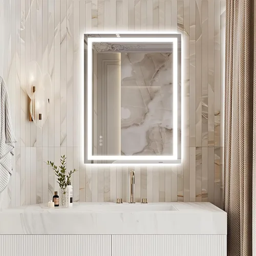 Sistema de iluminación dual que reduce las sombras: experimenta una iluminación uniforme y completa con nuestras innovadoras tiras de luz dobles con iluminación delantera y trasera. Nuestro espejo de maquillaje iluminado es ideal para una aplicación precisa de maquillaje, rutinas de cuidado de la piel o afeitado. Garantiza que cada detalle sea cristalino, adaptándose perfectamente a cualquier condición de iluminación interior. Temperatura y brillo de color ajustables: presiona brevemente para cambiar entre tres temperaturas de color: blanco cálido de 3000 K para un ambiente relajante, blanco natural de 4500 K para un maquillaje realista y blanco frío de 6000 K para energizar tu rutina matutina. Para un brillo preciso, simplemente presiona y mantén presionado para atenuar las luces, TheiaMo le da al espejo de pared iluminado un control total para que coincida con cualquier tarea, estado de ánimo o hora del día. Desempañador y función de memoria para máxima comodidad: el desempañador integrado elimina rápidamente la niebla del espejo después de duchas de vapor con un simple toque. Disfruta de una vista clara al instante, no más esperas. La función de memoria recuerda automáticamente la última configuración de luz utilizada (temperatura de color y brillo), restaurándola en el próximo uso para una comodidad consistente y sin complicaciones. Opciones flexibles para una fácil instalación: ofrece opciones de alimentación duales, este espejo montado en la pared se puede conectar o enchufar a una toma de corriente con un interruptor para simplicidad. Está diseñado para un proceso de instalación sencillo, por lo que es un ajuste perfecto tanto para nuevas construcciones de baño como para reemplazos fáciles, completo con instrucciones claras (idioma español no garantizado). Montaje horizontal o vertical versátil: maximiza tu espacio con un diseño de montaje universal que soporta orientación horizontal y vertical. Se adapta perfectamente a varios espacios como baños, dormitorios, tocadores o entradas. Ya sea que prefieras una amplia vista panorámica o una perspectiva alta y alargada, nuestro espejo de pared iluminado se integra sin esfuerzo en la decoración de tu hogar, combinando funcionalidad y estilo moderno.