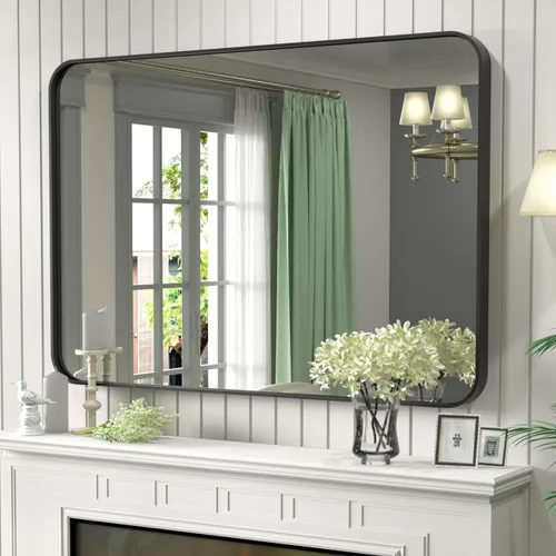 ¿Para qué sirve ODDSAN Espejo de baño con marco negro mate de 40 x 32 pulgadas, modernos espejos rectangulares de metal para pared de tocador, esquinas redondeadas?