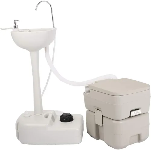 Especificaciones: 1. Material: HDPE 2. Dimensiones del fregadero de mano: (12.8 x 9.45)" / (32.5 x 24) cm (ancho x profundidad) 3. Altura de la mesa de lavado: 32.7 in. 4. Capacidad del tanque de desinfectante de manos: 3L 5. Tamaño del tanque de agua: (20.08 x 13.19)" / (51 x 33.5) cm (ancho x profundidad) 6. Capacidad del tanque: 19L 7. Dimensiones de la mesa de lavado: (20.08 x 13.19 x 40.55)" / (51 x 33.5 x 103) cm (largo x ancho x alto). 8. Dimensiones del inodoro: (16.34 x 14.37 x 16.54)" / (41.5 x 36.5 x 42.0) cm (largo x ancho x alto). 9. Capacidad del tanque de agua del inodoro: 10L 10. Capacidad del tanque de recuperación de inodoro: 20L 11. Peso del producto: 22.05 libras. 12. Color: blanco El paquete incluye: 1 fregadero de mano portátil. 1 inodoro portátil. 1 manual (idioma español no garantizado).