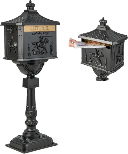 Giantex Buzón de aluminio fundido con poste Buzones residenciales con bloqueo para exteriores con llaves, puerta deflectora, pernos de expansión,