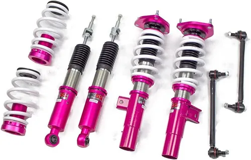 Godspeed MonoSS de Project es nuestra única entidad en nuestra familia de kits de suspensión helicoidal mono-ajustable. Estos coilovers están diseñados para ser un coilover construido en carreras callejeras a un precio asequible. Cuenta con un amortiguador monotubo que está hecho de un tubo de acero sin costura de carbono de 2.047 in con un pistón interno de rendimiento que proporciona la máxima respuesta del amortiguador. Los muelles doblados en frío están hechos de acero SAE9252 de alta resistencia para optimizar el equilibrio entre rendimiento y comodidad. Utilizando aceite de choque de calidad de carrera, Godspeed Project puede garantizar un rendimiento excepcional del amortiguador a cualquier temperatura dentro y fuera de la pista. La parte superior del amortiguador se fija al automóvil con un sombrero de copa de alta calidad que cuenta con un soporte de bola de almohada japonés KOYO 6204Z de alto rendimiento (cuando corresponde). Los soportes de amortiguador inferiores están hechos de un soporte de aluminio forjado T7075 o acero al carbono para un peso más ligero sin sacrificar la durabilidad, que también incluye soportes de línea de freno (cuando corresponde). El MonoSS ofrece 16 niveles de ajuste del amortiguador que se puede configurar a su preferencia.
