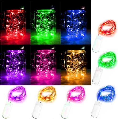Paquete de 6 unidades, total de 6 colores (verde, azul, rojo, rosa, naranja, púrpura), 20 luces LED micro estrelladas de alambre de cobre plateado, blanco cálido, 6.5 pies, funciona con pilas, impermeables, luces de decoración de tarro de masón, luces de luna, lo mejor para fiestas, bodas, decoración de Navidad. Especificaciones: 1. Longitud total de la cadena de luces por: 6.5 pies. 2. Cantidad de LED micro estrellado: 20 piezas 3. Funciona con baterías: 2 pilas de litio CR2032 (incluidas). 4. Colores de las luces de la cadena: verde, azul, rojo, rosa, naranja, morado. 5. Espacio de luces entre los LED: 3.9 in/4 pulgadas 6. Color del cable: plata, color de la caja de la batería: blanco. 7. Color del cable: blanco transparente. 8. Aviso: las piezas de alambre de cobre son impermeables, la caja de la batería no es impermeable. Lo mejor para decorar fiestas en casa: estas tiras de luces estrelladas son de color blanco cálido brillante, luz cálida que se balancea libremente, el aliento romántico impregnado en todas partes, te proporcionan un ambiente increíble y una sensación de ensueño, también puedes hacer un impresionante centro de mesa para una encantadora cena o decorar la mesa de recepción de boda, etc. Vestidos de hada/disfraces fáciles de hacer: esta guirnalda de luces es perfecta para hacer un vestido de hadas genial, disfraces de Halloween, vestidos de boda, con cables plateados ultra finos y 20 micro LED estrellados y una mini batería blanca que puede ser muy fácil de ocultar, definitivamente obtendrás muchas sorpresas con estas hermosas luces de hadas. Para luces de decoración de tarros de masón o luces de botellas de vino de bricolaje: tira de luces cálidas perfectas para decorar tu dormitorio, poner en botellas de vino o tarros de albañil para una decoración de mesa. La tira de luces estrelladas es impermeable y sumergible, puedes ponerla en la pecera debajo del agua, se verá muy bien. También el cable es muy suave y ligero, fácil de enrollar en cualquier lugar, adecuado para interiores o exteriores, como ventanas, sillas, macetas, jardín, árboles de Navidad, etc. El paquete incluye: 6 tiras de luces LED de 6 colores (batería incluida)