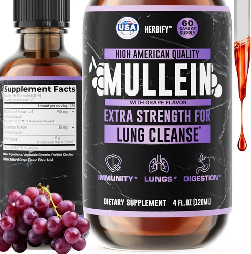 El extracto puro de hoja y flor de gordolobo de Herbify tiene un efecto muy similar al de la equinácea. Nuestra tintura de gordolobo ayuda en la limpieza pulmonar. Producto absolutamente esencial para fumadores y personas conscientes de la salud. Mézclalo con agua y apoya una respiración saludable. La potente mezcla de complejos pulmonares proporciona una mejora significativa para su sistema respiratorio. Utilizamos las mejores hojas y flores de la hierba de gordolobo. Disfruta del suplemento líquido con la mayor concentración de verbascum. Tomar Mullein en forma líquida es 3 veces más eficaz que tomarlo en polvo. Funciona rápidamente para mejorar su sistema digestivo, inmunidad y bienestar general. Así como la salud pulmonar duradera, limpieza de la garganta y los bronquios Herbify se fabrica en Estados Unidos con mucho orgullo. Estamos ubicados en Florida y utilizamos ingredientes americanos tanto como sea posible. Nosotros en Herbify tenemos un control de calidad estricto, verificamos nuestras fuentes y valoramos el Amor y la Confianza para nuestra marca por encima de todo lo demás. ¿Descontento con nuestro producto? ¡Contáctanos directamente para solucionarlo! - Si nuestro producto no cumple con tus expectativas, ponte en contacto con nosotros directamente para una solución rápida. Garantizar tu satisfacción es nuestra máxima prioridad. Con nosotros, disfruta de una experiencia de compra perfecta donde tu salud y bienestar son de suma importancia. Si los beneficios anticipados no se materializan, nuestra política de devoluciones sin problemas, que complementa la Garantía de la A a la Z de Amazon, ofrece un proceso sencillo de devolución de dinero.