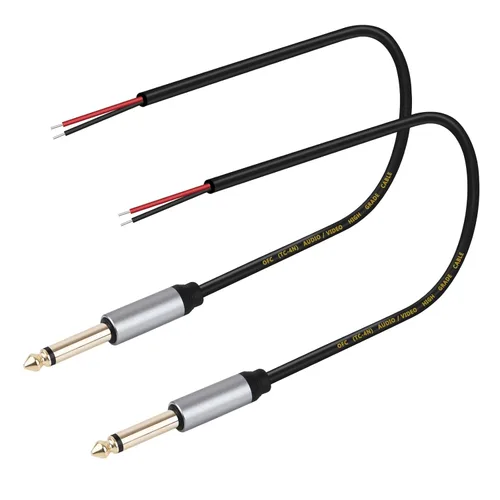 Enchufe macho mono de 2 polos de 0.250 in a cable desnudo. Diagrama de cableado: el cable rojo es el audio mono; el cable blanco - negro está molido. Conector macho de repuesto perfecto de 0.250 in a cable de audio de cable desnudo para reparación de cables de altavoz de micrófono desgastado o roto. Estos cables son fuertes. Fácil de manejar, conecta los cables desnudos correspondientes, envuelve y sella el cable desnudo con cintas aislantes. Contenido del paquete: 2 cables de audio de repuesto para conector macho mono de 2 polos de 1 pie y 0.250 in.