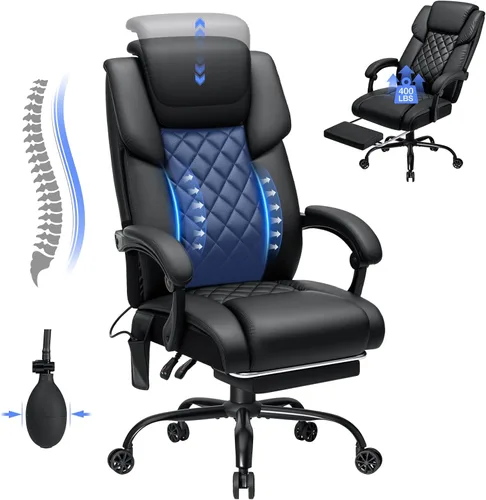HOFFREE Silla de oficina reclinable con soporte lumbar y reposacabezas ajustable, silla de oficina ejecutiva de 400 libras con reposapiés, silla de