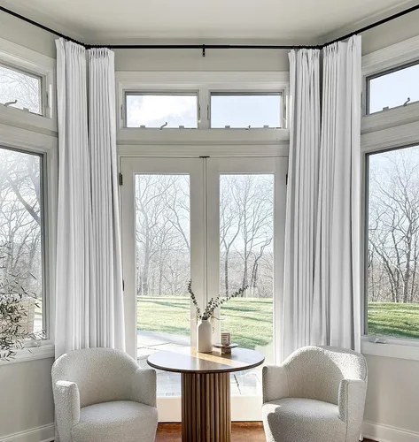 | Tipo de Cama o Colchones | Cortinas plisadas de lino con forro opaco |
