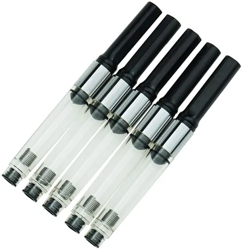 Estos convertidores son compatibles con todas las plumas estilográficas Hongdian, excepto la serie M2. Mecanismo de acción simple del émbolo dibuja tinta embotellada con un simple giro Longitud: 2.795 in, Diámetro: 0.134 in Paquete: 5 convertidores de pluma estilográfica PCS