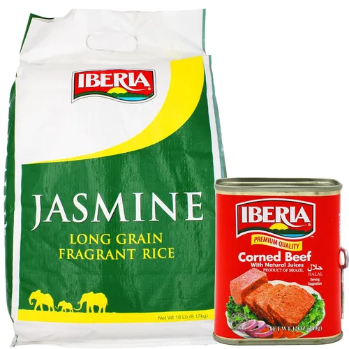 Iberia Carne de res en conserva, 12 onzas + arroz fragante Iberia Jasmine de grano largo, 18 libras