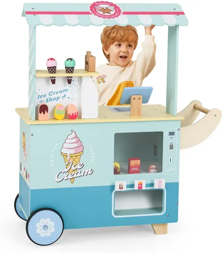 Play Store: el juguete INFANS para niños tiene todo lo necesario para simular un mercado de agricultores, una caja registradora, básculas de alimentos y una variedad de accesorios de alimentos para proporcionar una experiencia de mercado completa para los niños. Además, el diseño de una rueda giratoria y 2 ruedas de madera permite una fácil movilidad del juego portátil, lo que permite a los niños jugar libremente en varios lugares interiores. Aprender a través del juego: nuestra tienda de juegos para niños ofrece más que solo entretenimiento, proporciona valiosos beneficios educativos. A través del juego interactivo, los niños desarrollan habilidades cognitivas y sociales esenciales. Aprenden a contar y ordenar elementos, mejorando sus habilidades de aritmética y categorización. El juego de roles como comerciantes o clientes fomenta la comunicación y la cooperación. Accesorios incluidos: para que los niños sientan realmente la experiencia de vender, nuestro soporte de mercado de madera bien elaborado viene con una variedad de accesorios que incluyen 1 caja registradora, helado, paletas, pasteles y otros accesorios. Una amplia gama de accesorios proporcionan una experiencia totalmente inmersiva para tu pequeño. Material seguro para niños: hecho de MDF premium seleccionado, la tienda de comestibles de juego para niños es duradera para un uso prolongado. Todo el juego de juguetes de madera de esquina está pintado con pintura apta para niños para que tus hijos puedan jugar sin preocupaciones. Además, las esquinas redondeadas suaves proporcionan una mejor protección, evitando eficazmente que los niños se rayen y golpeen. Regalo perfecto para niños: enciende la imaginación de tu hijo y fortalece el vínculo entre padres e hijos a través de nuestro cautivador juego de juguetes de madera. Los estantes de almacenamiento debajo de la tienda de comestibles y los estantes de exhibición en la parte superior proporcionan un amplio espacio para que los niños pequeños muestren sus juguetes favoritos. Este es un regalo ideal para niños mayores de 3 años. EE. UU. Aprobado por CPSIA y ASTM: hecho de PP de grado alimenticio, libre de BPA, PVC, ftalatos, plomo, látex y formaldehído. Sin puntos ni bordes afilados. Pasó las pruebas de estabilidad, asfixia, carga y cizallamiento.