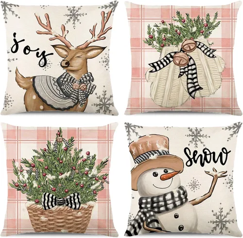 • poliéster DECORACIONES DE NAVIDAD ROSA PARA 2023: las fundas de almohada de Navidad rosas de Mencly son una buena adición a tu decoración navideña rosa. Con los patrones brillantes, lindos, únicos y festivos, están listos para alegrar tu casa y dar la bienvenida a las ráfagas a tu hogar. El tamaño y el paquete incluye: juego de 4 fundas de almohada de Navidad rosas de 20 x 20 pulgadas. Sin inserto ni relleno. El patrón está solo en la parte delantera y no hay impresión en la parte posterior. Nuestras fundas de almohada de Navidad se ajustan a rellenos de 20 x 20 pulgadas o más pequeños. Duraderas y lavables a máquina: hechas de poliéster de alta calidad, estas fundas de cojín de Navidad son cómodas, agradables al tacto, resistentes y no se decoloran ni deshilachan fácilmente, lo que les permite durar mucho tiempo tanto en interiores como en exteriores. Además, son lavables a máquina para una limpieza sin complicaciones. Diseño de cremallera invisible y fácil de poner: el cierre de cremallera oculta aporta un aspecto elegante. Es muy fácil meter almohadas/rellenos en las fundas de almohada navideñas. Ideal para decoración del hogar: estas fundas de almohada navideñas son perfectas para tu hogar, sala de estar, dormitorio, oficina, ropa de cama, sofá, cojín, coche, etc.