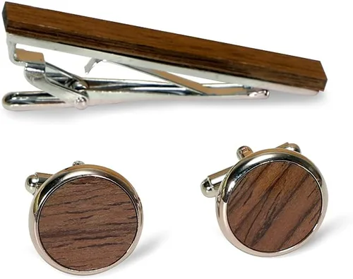 Juego de pinzas de corbata de madera y gemelos para hombres, juegos de clips de corbata de 2 pulgadas para hombres con incrustaciones de madera