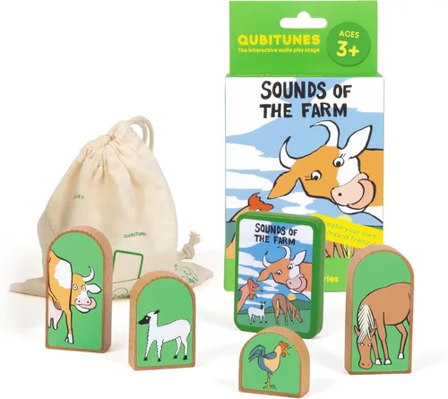 Dale vida a la granja con sonidos de pollos, vacas, caballos y más. Simplemente coloca los bloques de animales en el escenario y muévelos. Con bloques de madera inteligentes e interacción sin fin. Sin pantalla y práctico: aprendizaje basado en audio e historia y juego imaginativo. Mueve los bloques alrededor del escenario de reproducción interactiva para crear innumerables aventuras de audio. Fomenta el pensamiento creativo y el juego imaginativo. Perfecto para niños de 3 a 8 años; amado por padres que buscan juguetes desenchufados y de alta calidad. Los juegos de expansión mantienen la diversión fresca y crece con tu hijo. Nota: requiere la etapa de juego inicial de Qubitunes para funcionar.