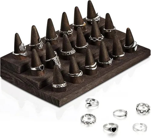 ¿Para qué sirve Juexica Soporte de anillo de madera de 18 dedos Soporte de anillo de dedo de madera para vender expositores de joyas Escaparate para almacenamiento?