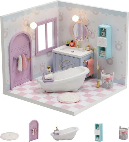 Kit de casa de muñecas en miniatura de Kisoy con muebles, kit de casa de madera 3D para hacer tú mismo en un rincón de estilo apartamento pequeño