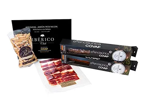 El mejor paquete gourmet Ibérico Lover Starter Kit para verdaderos amantes ibéricos. 1 paquete de 2.5oz de la mejor "Pata Negra" tallada a mano 1 Chorizo Ibérico de Bellota Artesanal (1.2lb) 1 Salchichón Ibérico de Bellota Artesanal (1.2lb) 6 bolsas de Picos Camperos hechos a mano en un horno de leña (1 oz/cada una)